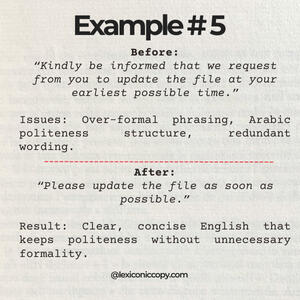 Tone mismatches or overly formal phrasing, common in MENA business English