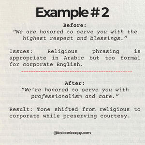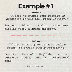 Arabic-to-English copy elevated to U.S. standards by a boutique editor fluent in Arabic and global nuance.